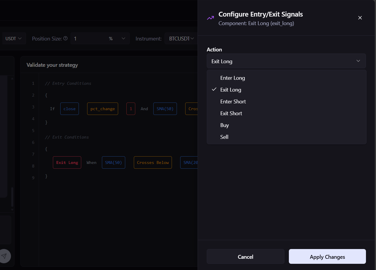 Choose the action: Enter Long, Exit Long, Enter Short, Exit Short, Buy, Sell